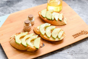 Поверх румяного багета выложите кусочки авокадо.