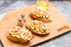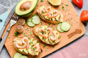 Брускетта с авокадо и креветками