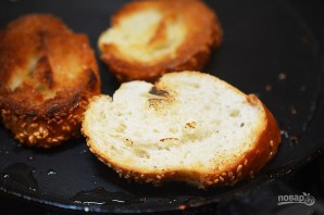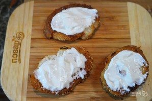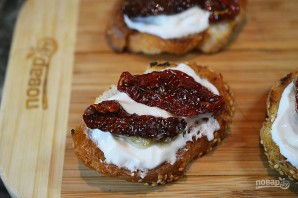 Каждый ломтик багета намажьте ложкой творожного сыра.