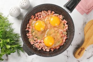 Блюдо готовится без лишних сложностей. Рецепт очень простой, но здесь больше важна сама идея. На приготовление самих яиц уйдёт буквально минута, а в качестве дополнительных ингредиентов можно взять практически всё, что есть под рукой. Импровизируйте даже на скорую руку! Быстрая яичница болтунья подойдёт для всех, у кого на готовку совсем нет времени. Колбаса и лук сделают блюдо сочнее и питательнее, ваши родные будут завтракать с удовольствием Готовое блюдо можно подавать к столу.