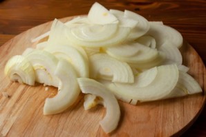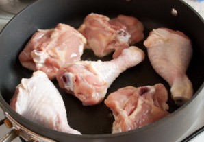 Обжарьте лук на сливочном масле и добавьте к курице. Тушите чахохбили под крышкой 30 минут.