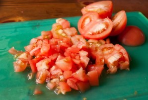 С помидор снимите кожицу, порежьте на кусочки и добавьте к курице, тушите 10 минут.