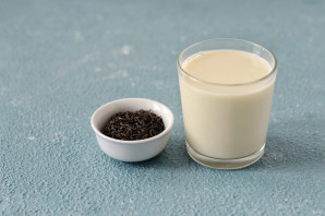 Чашку заполните на 1/3 молоком.