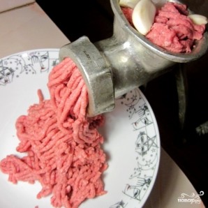 Фарш еще раз прокручиваем на мясорубке, вместе с ним прокручиваем лук и чеснок.