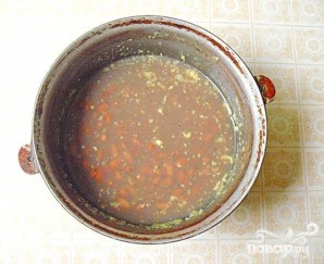 1. С вечера замачиваем фасоль, затем ее хорошо промываем, заливаем холодной водой и ставим вариться. После того как фасоль закипит, нужно слить воду, фасоль промываем, снова заливаем свежую воду и ставим вариться. Все это повторяем еще раз. Последний раз фасоль заливаем свиным бульоном.