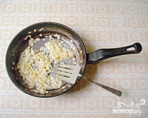 2. Пока доваривается фасоль, готовим поджарку. Для этого нарезаем кубиками лук и поджариваем его в растительном масле. Поджаривать можно по-разному: можно чтобы лук был подрумяненным, а можно только слегка поджаренный.