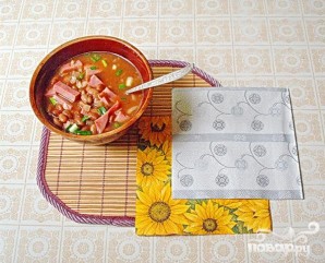 Деревенский стиль приготовления сытной и вкусной похлебки. Блюдо включает в себя много различных ингредиентов, но основные – это рубленая ветчина и фасоль Подавайте суп горячим.