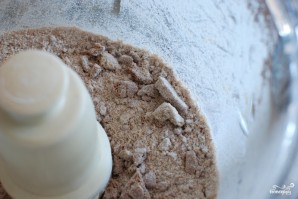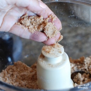 В кухонном комбайне до однородности перемешаем муку, коричневый сахар, сахарный песок, печенье и корицу.