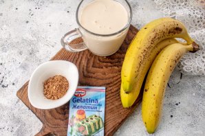 Горячий желатин не следует вливать в ряженку, иначе он может свернуться или скомковаться. Поэтому, к горячему желатину влейте пару ложек ряженки с бананом, для уравнивания температуры.