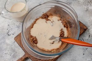 Влейте ряженку, перемешайте.
