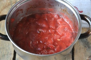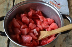 Поставьте мякоть арбуза вместе с выделившимся соком на огонь и варите около часа. Лучше варить массу на медленном огне.