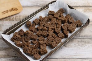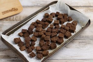 Ржаной черный хлеб порежьте на кубики.