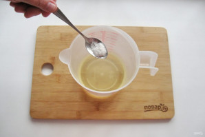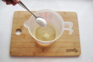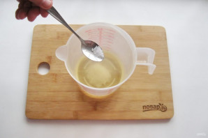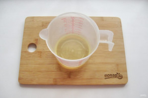 В высокую посуду, например, мерный стакан, налейте рафинированное подсолнечное масло. Предварительно поставьте его в морозильную камеру на 20 минут.