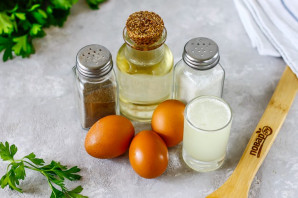 Подготовьте указанные ингредиенты. Масло лучше всего использовать рафинированное подсолнечное без аромата или оливковое холодного отжима.