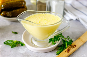 Украсьте соус свежей зеленью и подайте к столу. Особенно вкусен он с блюдами из картофеля.