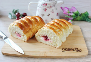 Дрожжевой пирог с вишней и творогом