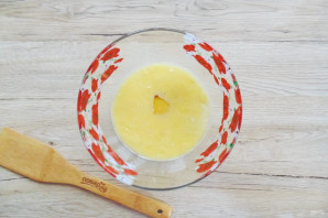 В миску раскрошите дрожжи и налейте теплое молоко, хорошо перемешайте. Можно использовать сухие дрожжи, их потребуется в три раза меньше — 7-8 грамм.