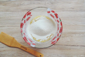 Постепенно насыпьте просеянную муку.