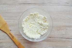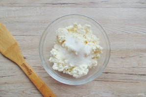 Перемешайте творог с сахаром.
