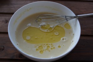 Добавляем молоко и воду. Взбиваем до однородности.