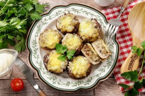 Подойдёт и к празднику, и на каждый день. Фаршированные шампиньоны в аэрогриле сохраняют свою сочность и нежность, при этом получаются невероятно вкусными и румяными. Если у вас нет такого кухонного помощника, то можете запечь грибы в духовке или приготовить на мангале. Прекрасный вариант как для будней, так и для праздничного стола, а фаршировать шампиньоны можно тем, что вы больше любите. Быстро, просто и безумно вкусно, обязательно попробуйте Можно подавать тёплой или охлаждённой.
