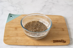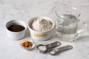 Нагрейте 150 мл. воды до 60 градусов, добавьте 25 грамм солода и 50 грамм ржаной муки. Размешайте.