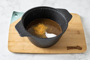 Переложите ферментированную массу в кастрюлю, добавьте сахар и соль по вкусу. Проварите на среднем огне 10 минут, постоянно помешивая.
