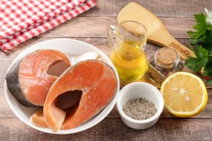 Подготовьте все ингредиенты по списку. У меня два стейка весом 500 грамм. Можете взять уже готовое филе. Из специй я предлагаю использовать только молотый перец, соль беру адыгейскую.