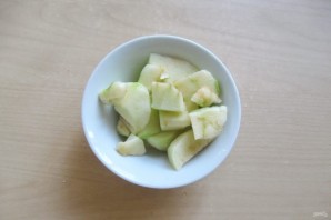 Зеленое, кислое яблоко очистить, помыть и произвольно нарезать.