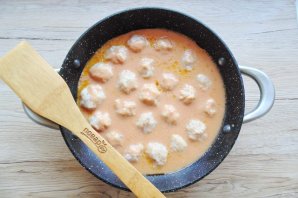 Сотейник накройте крышкой и тушите фрикадельки 25-30 минут на небольшом огне.