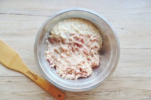 Фарш посолите и поперчите по вкусу. Тщательно перемешайте.