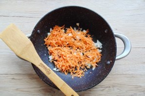 Пассеруйте лук с морковью 7-8 минут до прозрачности лука.