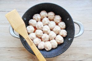 Из фарша сформируйте фрикадельки и выложите в сотейник.