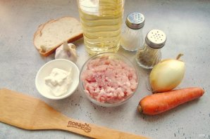 Подготовьте ингредиенты для приготовления фрикаделек в сметанном соусе.