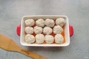 Фрикадельки выложите на лук с морковью в форму.