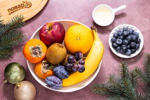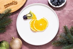 Подготовьте все ингредиенты. Все фрукты и ягоды помойте, обсушите. Киви очистите от кожуры. Заранее подберите себе шаблон силуэта лошади, по которой будете делать фруктовую нарезку.