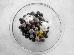 4. Смешайте замороженную чернику, 1 столовую ложку сахара, крахмал, 0,5 чайной ложки цедры, 1 столовую ложку лимонного сока.