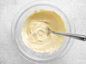 5. В другую миску выложите сливочный сыр, куриный желток, оставшийся сахар, 1 чайную ложку лимонного сока.