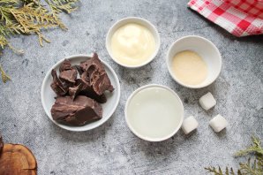 Подготовьте все необходимые ингредиенты для приготовления глянцевой шоколадной глазури для торта.