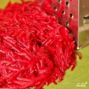 Отваренную свеклу, когда остынет, натираем на крупной терке.