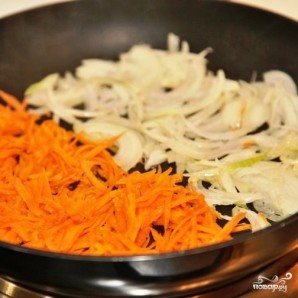 Лук и морковь мелко нарезаем, обжариваем до мягкости на масле.