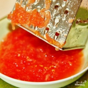 Помидоры очищаем от шкурки и натираем на крупной терке.
