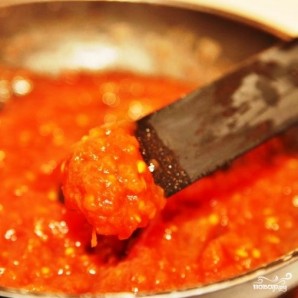 Получившуюся томатную мякоть добавляем в сковороду к луку и моркови, тушим 2-3 минуты до небольшого загустения массы.
