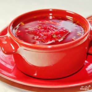 Идеально для обеда. Назвать этот суп борщом мне не позволяет моя кулинарная совесть - все-таки борщ гораздо более сложное блюдо, а это - именно овощной, свекольный суп, сокращенно - свекольник. Поскольку свекольник варится не на мясном бульоне, получается он весьма легким, не слишком калорийным, хорошо переваривается организмом. Я готовлю свекольник именно тогда, когда хочется чего-то легкого, нежирного, но питательного. И подаю я его горячим - честно говоря, в холодном виде свекольник мне совершенно не нравится. Удачи в приготовлении. Надеюсь, простой рецепт горячего свекольника вам понравится :) Разлейте по тарелкам и подавайте.