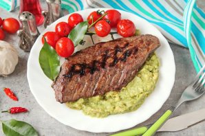 Для приготовления лучше всего взять стейк из говядины специально для жарки. Авокадо выбирайте спелое и мягкое, а сок лимона не позволит ему потемнеть