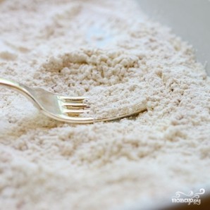 В тарелочке смешиваем все сухие ингредиенты: муку, соль, черный перец и кайенский перец. Хорошенько перемешиваем.