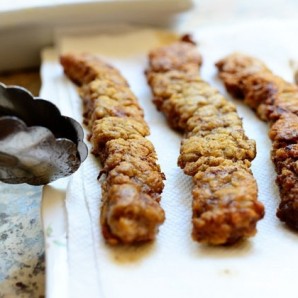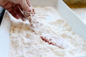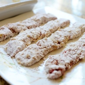 Аналогичным образом подвергаем панировке все остальные говяжьи пальчики.