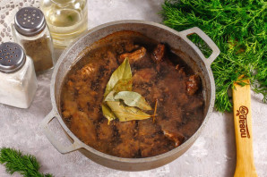 Блюдо готовится без лишних сложностей. Блюдо готовится долго, именно поэтому считается деликатесом. Обязательно вырезайте из говядины жилы, иначе после приготовления вы не сможете его прожевать. Томить мясо нужно не менее 1 часа, чтобы оно не получилось жестким на вкус Готовое блюдо можно подавать к столу.