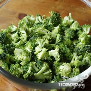 1. В первую очередь на соцветия разбираем брокколи, и складываем их в миску. На время отставим.
