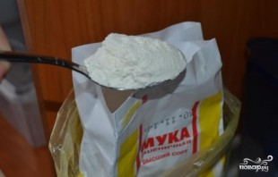 5. После того как грибы уменьшились в размерах, добавьте муку. Муку равномерно рассыпьте по грибам, постепенно грибной сок ее напитает влагой.